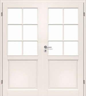 Podwójne drzwi emanują jasną harmonią dzięki białej lakierowanej powierzchni. Wielowarstwowa budowa lakieru i solidna rama dodatkowo zwiększają wytrzymałość tego modelu.