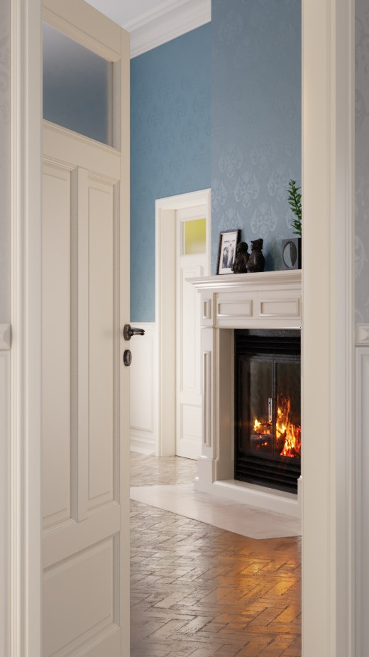 Szklane wypełnienie osadzone we fryzie drzwiowym jest otoczone delikatnymi drewnianymi listwami – ta cecha szczególna podkreśla harmonijny wygląd całości. To, co zazwyczaj osiąga się za pomocą elementów dekoracyjnych, można w naturalny sposób podkreślić dzięki przemysłowym technikom stolarskim . W tym przypadku na pierwszym planie znajduje się wysoka jakość wykonania.
