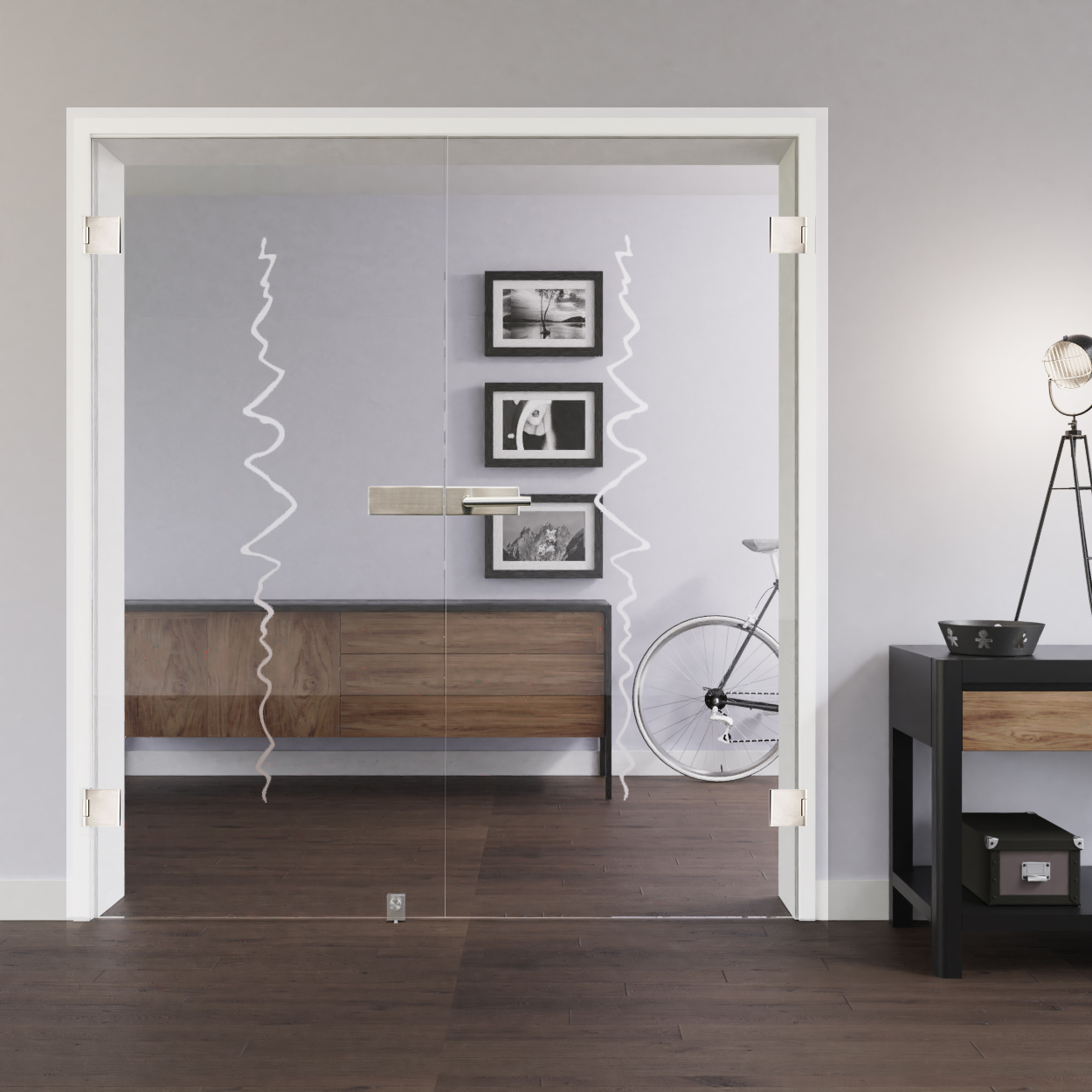 Drzwi podwójne z skrzydłami o grubości 8 mm z szkła hartowanego: