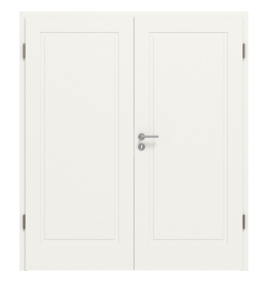 Wysokiej jakości biała lakierowana powierzchnia w opcjonalnych kolorach RAL 9010 lub RAL 9016 nadaje modelowi nowoczesny charakter, podczas gdy starannie wykończona rama zapewnia elegancki wygląd. Duży prostokąt w centrum każdego skrzydła drzwiowego zapewnia klasyczny i prosty design.