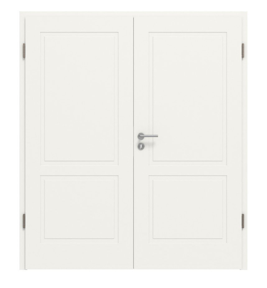 Prosty i klarowny design zapewniają cztery prostokąty, które wyróżniają się na powierzchni. Wysokiej jakości biała lakierowana powłoka w opcjonalnych kolorach RAL 9010 lub RAL 9016 nadaje skrzydłom drzwi nowoczesny i przyjazny wygląd.
