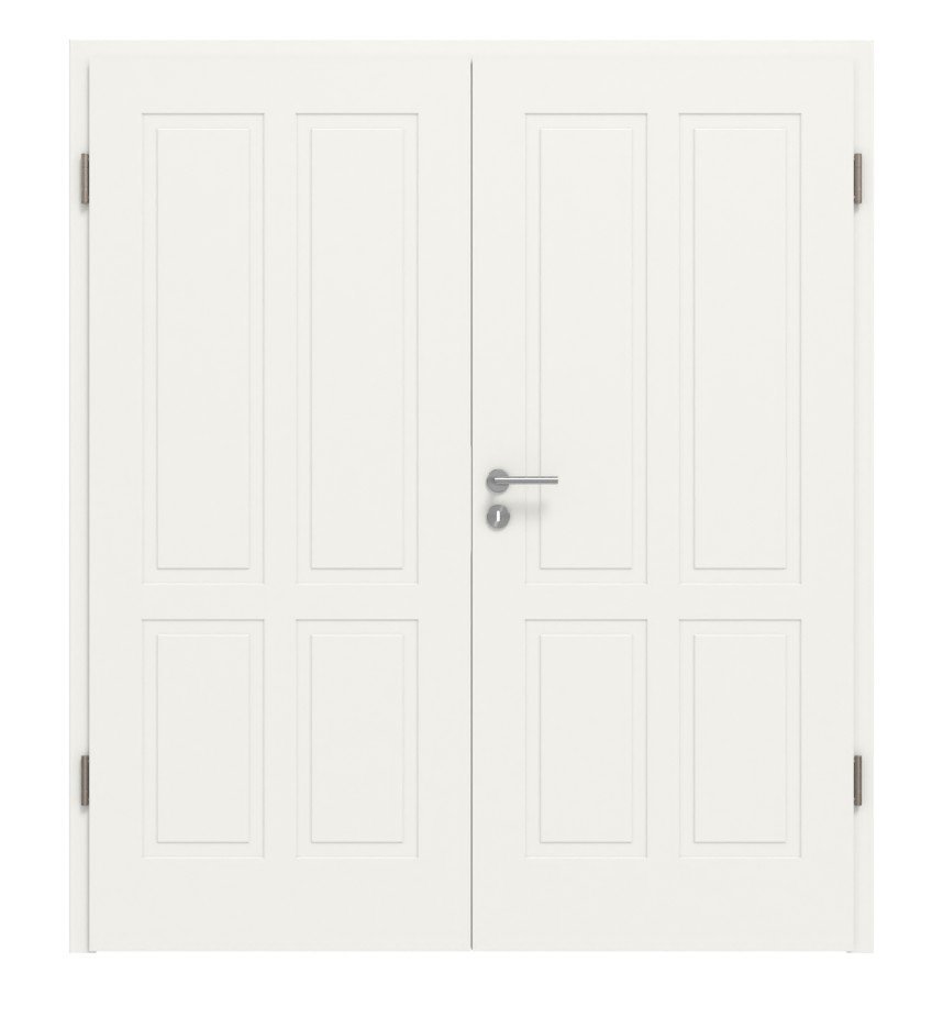 Osiem prostokątów zapewnia prosty i klasyczny design drzwi. Dzięki wysokiej jakości obróbce ramy i eleganckiemu białemu lakierowi w opcjonalnych kolorach RAL 9010 lub RAL 9016 powstaje elegancki akcent.