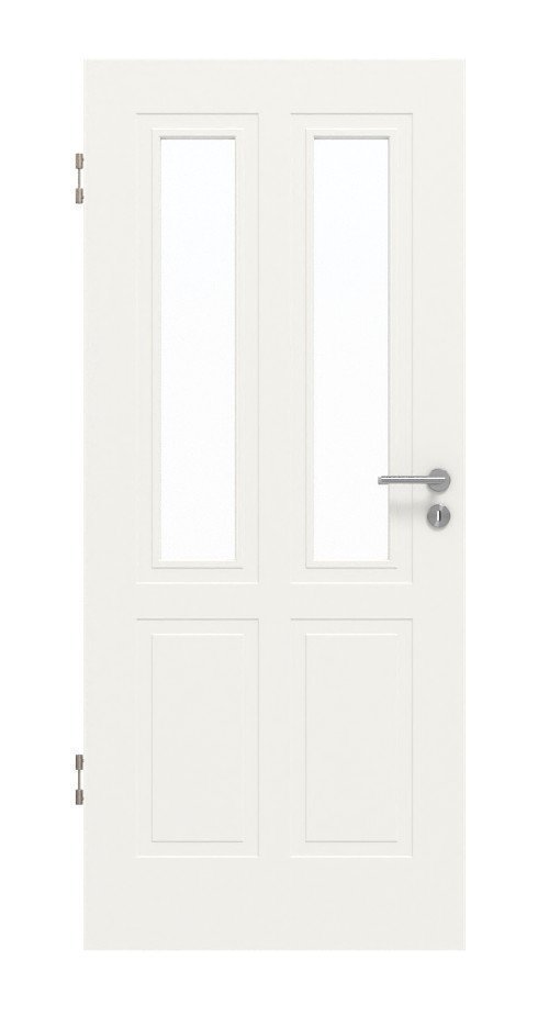 Dwa prostokątne przeszklenia zapewniają przejrzysty i otwarty klimat, podczas gdy prosty ramka tworzy elegancję. Dzięki wysokiej jakości białemu lakierowi w opcjonalnych kolorach RAL 9010 lub RAL 9016 uzyskuje się szlachetny blask na powierzchni.