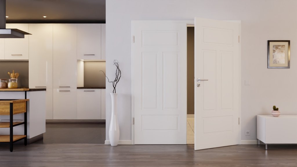 Łatwa w pielęgnacji ościeżnica od Hörmann w białym lakierze do Twojego modelu drzwi wewnętrznych z podwójnymi skrzydłami: