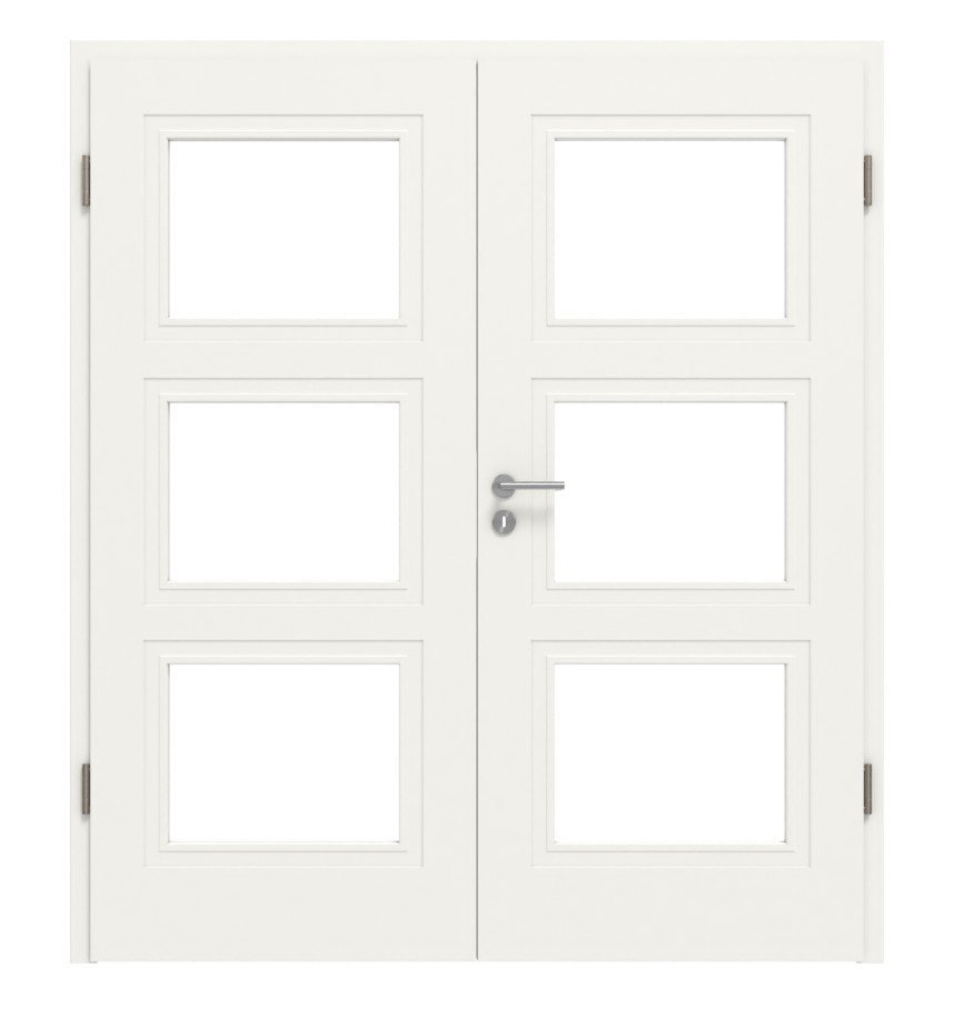 Dzięki sześciu jednakowym przeszkleniom do wnętrza wpada dużo światła. Przezroczysty design podkreślony jest szlachetnym białym lakierem w opcjonalnych kolorach RAL 9010 lub RAL 9016. Dzięki wysokiej jakości obrobionej ramie powstaje klasyczny design drzwi.