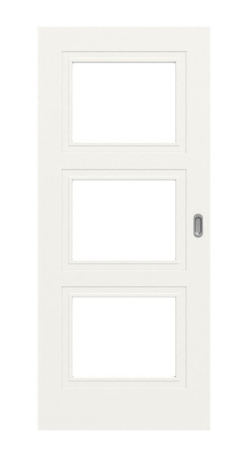 Dzięki trzem przeszkleniom do wnętrza wpada dużo światła. Elegancję skrzydła drzwiowego zapewnia wysokiej jakości obramowanie. Szlachetne białe lakierowanie w opcjonalnych kolorach RAL 9010 lub RAL 9016 nadaje modelowi przyjazny i nowoczesny charakter.