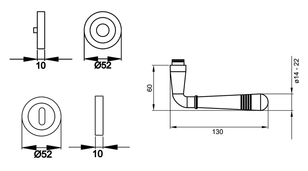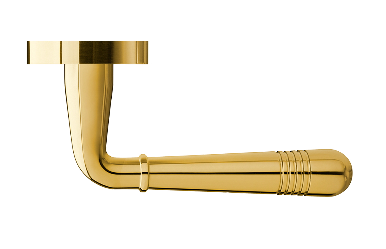 Dzięki zintegrowanej sprężynie podtrzymującej klamka jest niezawodnie utrzymywana w poziomej pozycji. Łatwy montaż zapewniają śrubowe rozetki.