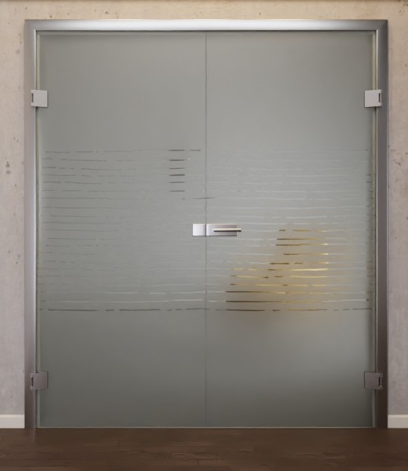 Inspirowany alfabetem Morse’a design zdobi satynowane skrzydładrzwiowe czynne i bierne. Wyraźny motyw przebiega wzdłuż środka obu skrzydeł drzwiowych i gwarantuje delikatny prześwit. Jednocześnie zapewnia przyjemny dopływ światła do pomieszczenia. Zmiana matowych i przezroczystych sekcji sprawia, że te drzwi dwuskrzydłowe są idealnym elementem dzielącym pomieszczenie.