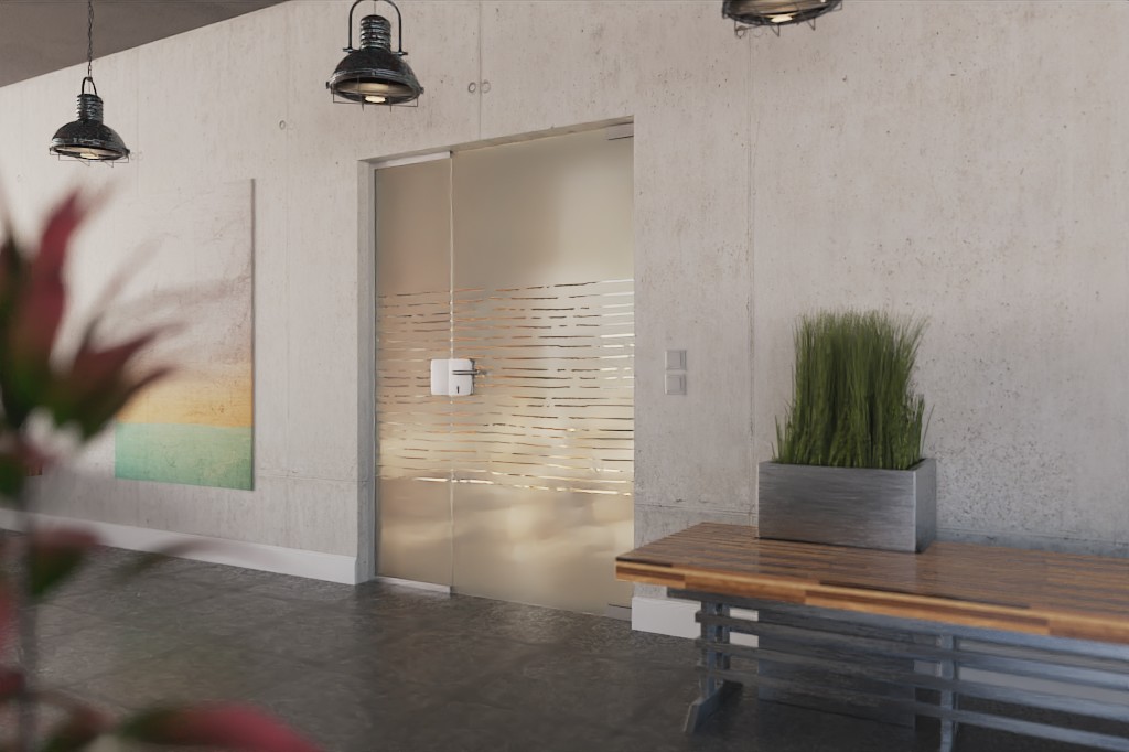 Modny, przyciągający wzrok element wystroju ze szkła: Całkowicie przeszklona konstrukcja Dorma Mundus z Erkelenz tworzy przyjazne połączenie między pomieszczeniami. Dopełnieniem tych całkowicie szklanych drzwi jest stały element boczny .