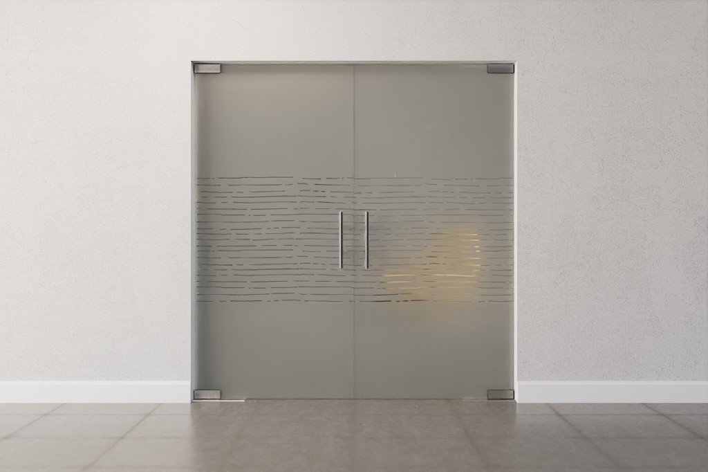 Atrakcyjna podwójna drzwi wahadłowe z wytrzymałego, łatwego w pielęgnacji szkła hartowanego: