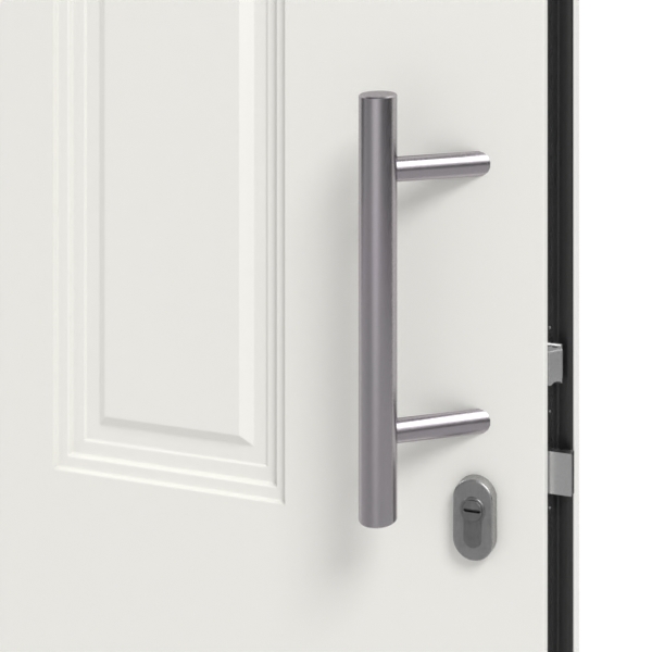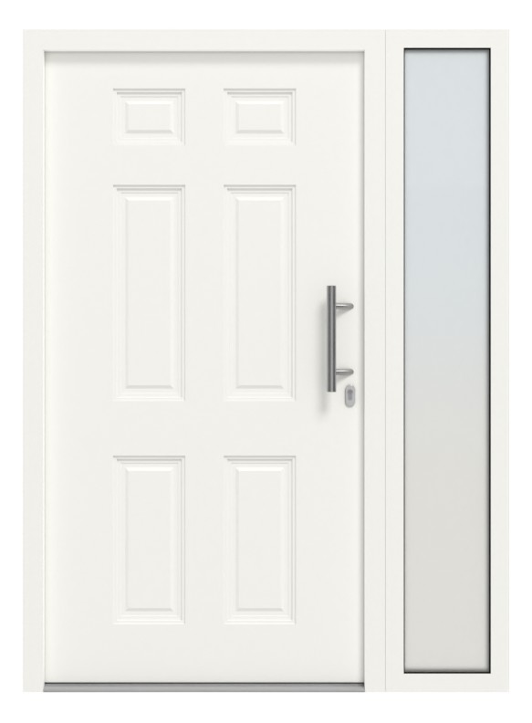 Elegancki design w stylu wiejskim wyróżnia się dzięki kasetom o różnych rozmiarach. Zwracają one na siebie uwagę zwłaszcza dzięki dyskretnemu wypełnieniu pokrywającemu skrzydła. Dzięki dużym, satynowanym panelom bocznym do pomieszczenia wewnętrznego wpada jednak dużo naturalnego światła. Jednocześnie zachowana jest prywatność.
