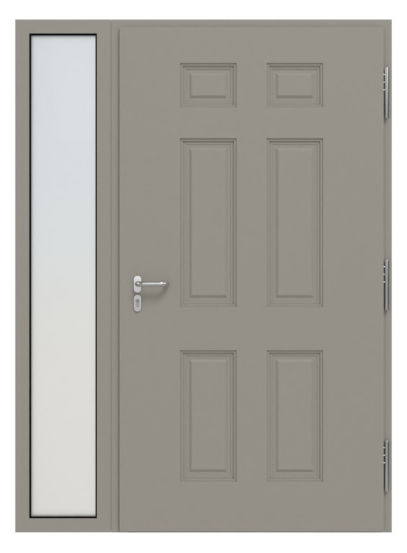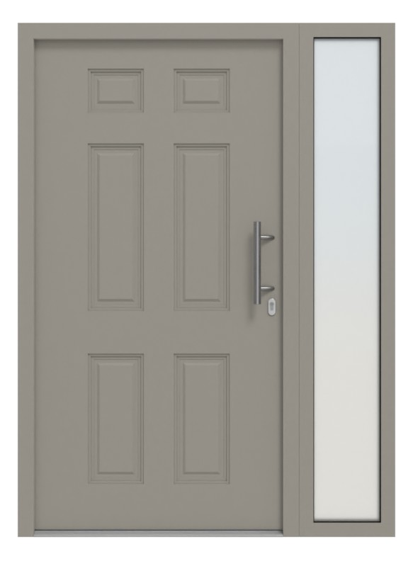 Elegancki design w stylu wiejskim wyróżnia się dzięki kasetom o różnych rozmiarach. Zwracają one na siebie uwagę zwłaszcza dzięki dyskretnemu wypełnieniu pokrywającemu skrzydła. Dzięki dużym, satynowanym panelom bocznym do pomieszczenia wewnętrznego wpada jednak dużo naturalnego światła. Jednocześnie zachowana jest prywatność.