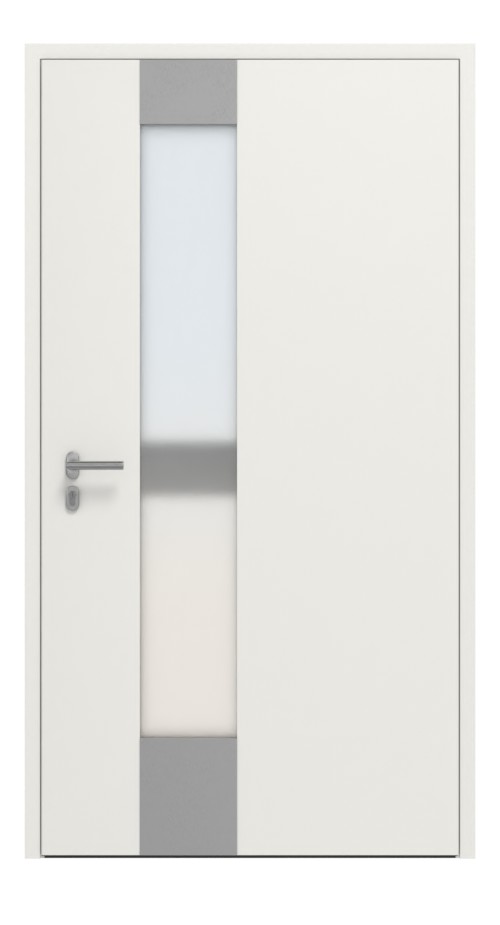 • Zakres dostawy: Drzwi wejściowe z ramą, progiem, ukrytymi zawiasami, zamkiem, cylindrem profilowym z 5 kluczami, uchwytem (stal nierdzewna), wewnętrznym przyciskiem, rozetą klejoną wewnątrz i rozetą cylindryczną na zewnątrz, dodatkowe elementy do skonfigurowania.