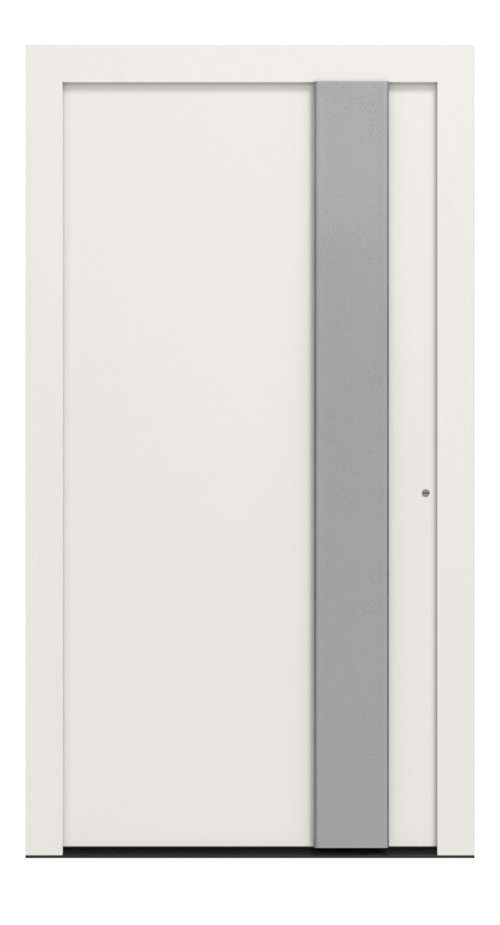 • Szczegóły wzoru: zamknięte skrzydło drzwiowe z aluminium, szeroki uchwyt z aplikacją