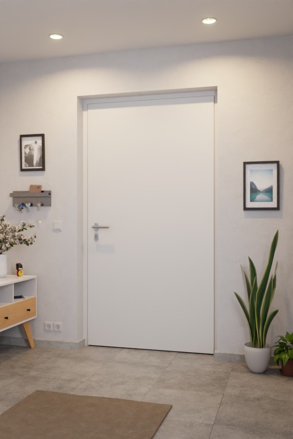 • Zakres dostawy: Drzwi wejściowe z ramą, progiem, ukrytymi zawiasami, zamkiem, cylindrem profilowym z 5 kluczami, szerokim zewnętrznym uchwytem, wewnętrznym przyciskiem, rozetą klejową wewnątrz i licującą rozetą cylindrową na zewnątrz, dodatkowe elementy do skonfigurowania.