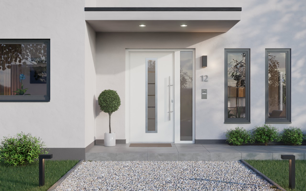 Hörmann Haustür Thermo46 700 mit Seitenteil RAL 9016-RAL 9016 Frontansicht außen