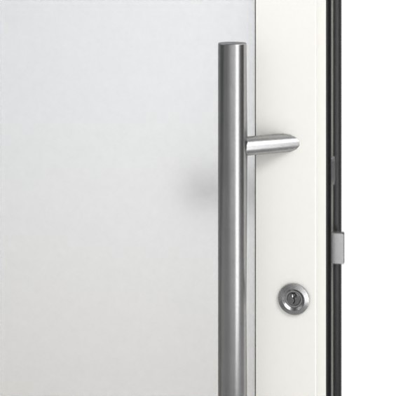 • Zakres dostawy: Drzwi z ościeżnicą, progiem, zawiasami, zamkiem, cylindrem profilowym z 3 kluczami oraz okuciem z zewnętrzną klamką, wewnętrznym przyciskiem i okrągłą rozetą, dodatkowe elementy do skonfigurowania.