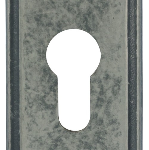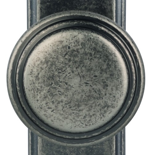 Okrągły przycisk modelu oraz długie szyld zdobią dekoracyjne stopnie. Uchwyt z elementami w kształcie pierścienia oraz powierzchnia w satynowanym antycznym żelazie sprawiają, że zestaw jest wyjątkowym elementem dekoracyjnym. Sprężyna podtrzymująca wewnątrz utrzymuje klamkę w idealnej pozycji.