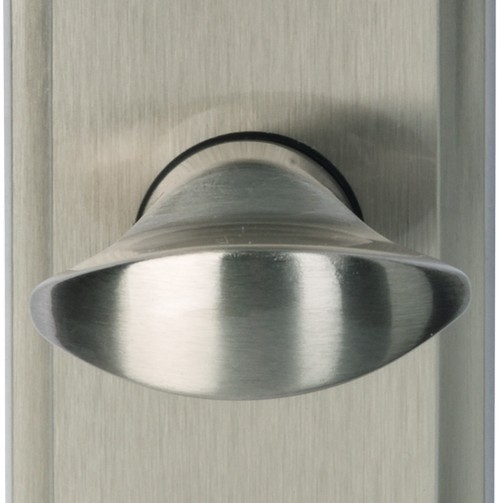 Matowa, stalowoszara powierzchnia nadaje modelowi subtelny połysk. Okrągłe zdobienia na stożkowym uchwycie oraz stopniowane rowki wzdłuż tarczy podkreślają elegancki wygląd. Sprężyna powrotna wewnątrz utrzymuje klamkę w idealnej pozycji.