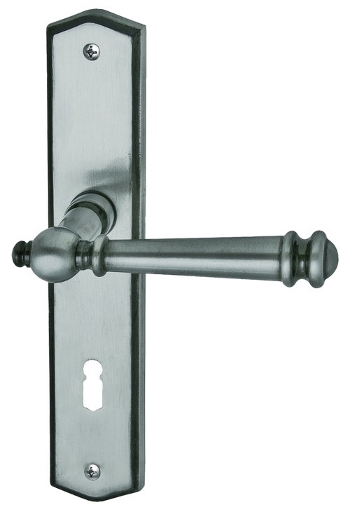 Oferując powierzchnię w satynowej stalowej szarości oraz ozdobnie wykończoną klamkę, ten model jest prawdziwą ozdobą. Widocznie przykręcona płyta długoskrzydłowa jest otoczona dekoracyjnymi stopniami. Sprężyna podtrzymująca wewnątrz klamki utrzymuje uchwyt w idealnej pozycji.