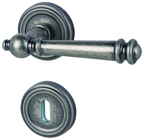 Model mosiężny z certyfikatem ochrony przeciwpożarowej w Antik-Iron zachwyca swoim wyglądem w stylu vintage i licznymi detalami. W klamce zamontowana jest również sprężyna podnosząca, która zapewnia jej optymalne osadzenie.