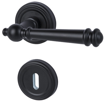 Dzięki czarnemu satynowanemu okułkowi nadajesz swojej drzwi rustykalny akcent. Zestaw ozdobiony jest finezyjnymi detalami na gałce, klamce i rozetach. W klamce znajduje się również sprężyna podtrzymująca, która zapewnia jej optymalne osadzenie.