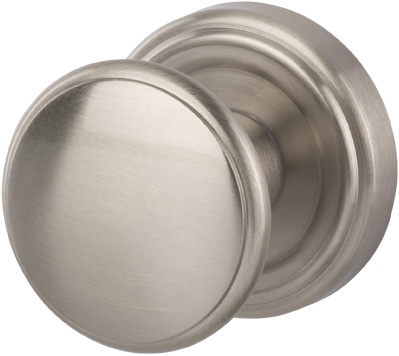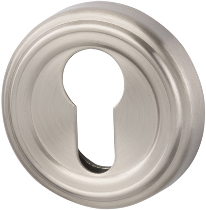 Matowe mosiężne wykończenie w kolorze stali nierdzewnej podkreśla vintage'owy styl tego zestawu zamków odpornych na ogień. Dzięki różnorodnym zdobieniom na uchwycie i rozetach powstaje autentyczny klasyczny wygląd. Klamka wyposażona jest w zintegrowaną sprężynę podtrzymującą, która zapewnia jej poziomą pozycję.