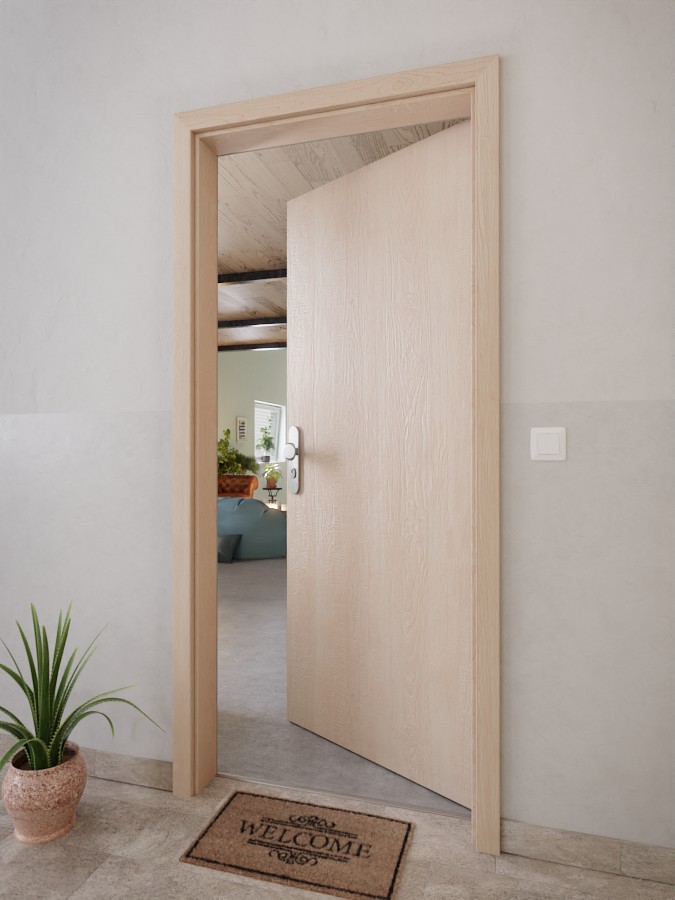 Odporność na odkształcenia i ochrona akustyczna w jednym: Solidna konstrukcja zapewnia ochronę przed codziennymi hałasami już w najmniejszej klasie ochrony akustycznej. Standardowa konfiguracja gwarantuje również odporność na typowe różnice wilgotności powietrza i temperatury. Drzwi posiadają płytę wiórową pełną. Ich wkład jest wielowarstwowy w zależności od wykonania. Klasa odporności RC2 spełnia zalecane standardy ochrony. W zależności od Twoich indywidualnych potrzeb, klasa klimatyczna i odpornościowa może być zwiększona. Proszę pamiętać: Standardowa konfiguracja elementu drzwiowego nie zawiera ochrony przed włamaniem. Więcej informacji znajdziesz w sekcji funkcji ochronnych.