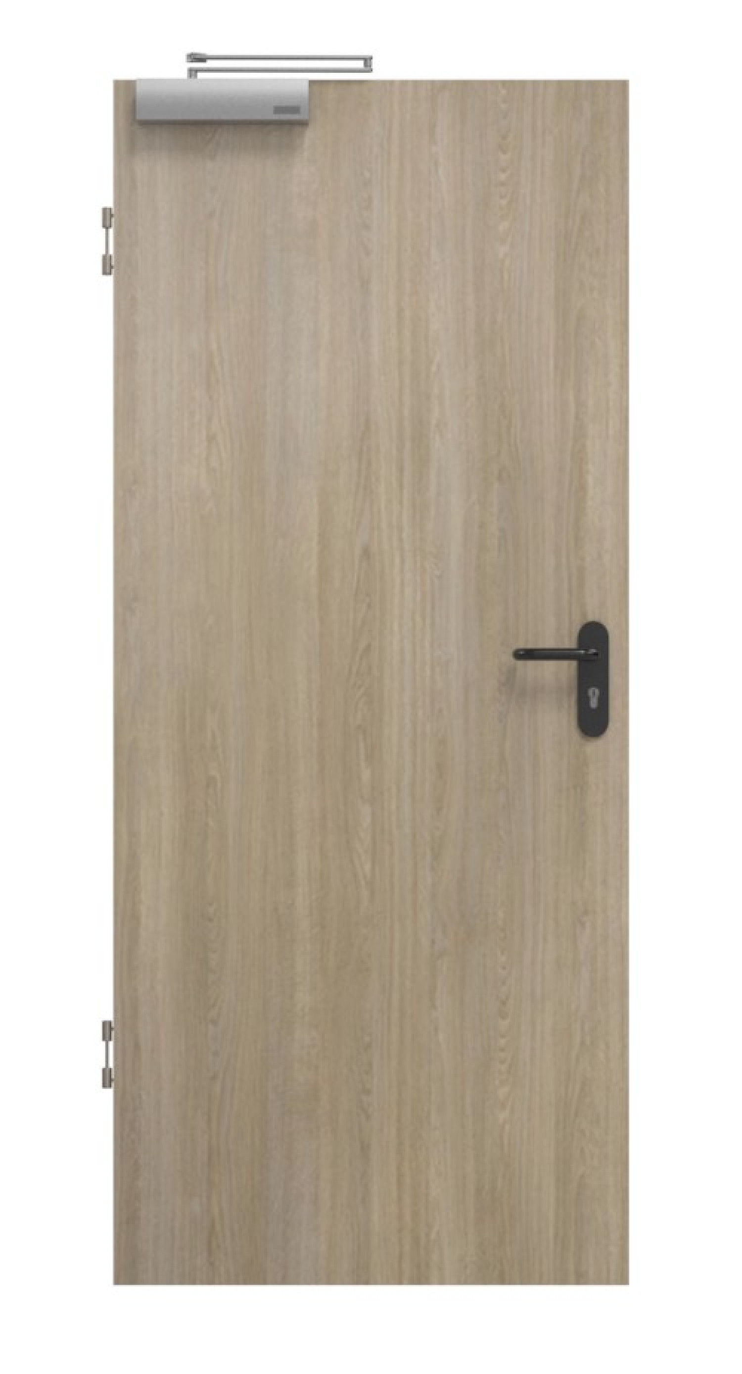 Wytrzymała i niezawodna: Wysokiej jakości drzwi przeciwpożarowe dębowe szare struktura od Schörghuber spełniają klasę odporności ogniowej T90.