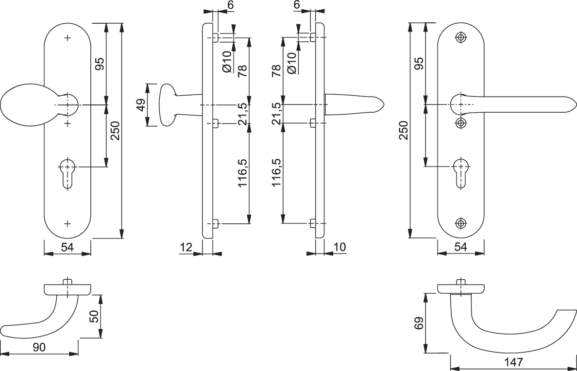 Standardowo osłona jest wyposażona w zamek PZ i kombinację klamki z gałką. Wyrafinowane, proste rozwiązanie z miękką, zaokrągloną formą zapewnia przyjemny, lekki komfort obsługi.
