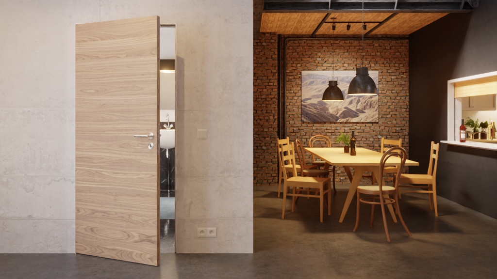 Drzwi z chowanym skrzydłem i ukrytymi zawiasami zapewniają design na poziomie ściany w luksusowych drzwiach. Możliwość ich odwrócenia (otwierania w obu kierunkach) wprowadza elastyczność do Twojego wnętrza!