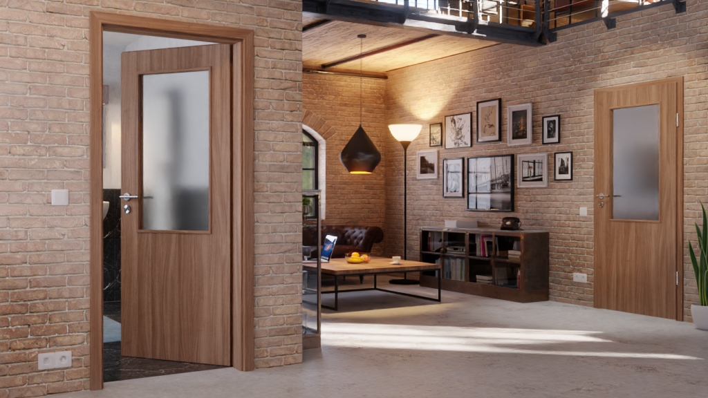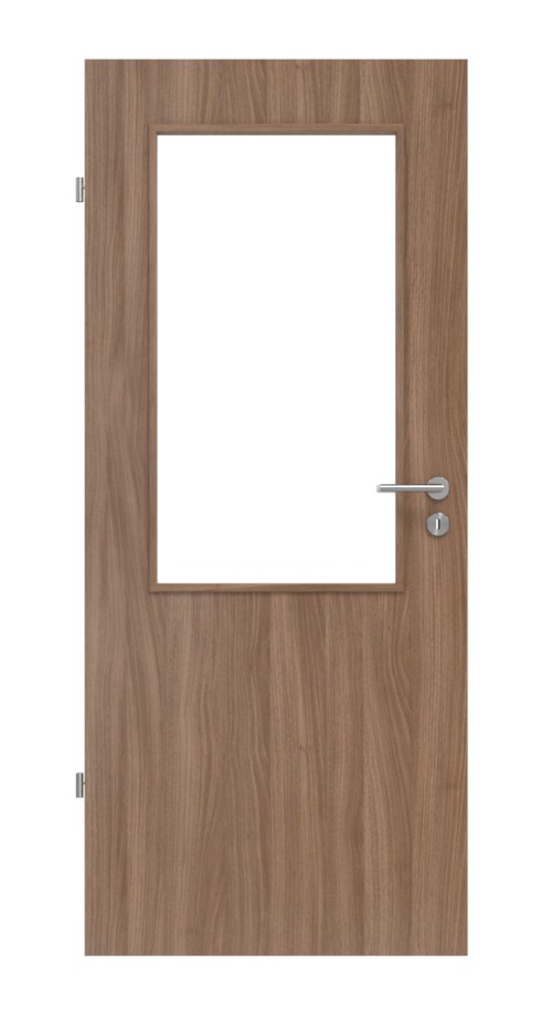 Prostokątne okno optycznie dzieli drzwi. Dzięki widokowi na Twój pokój przez górną część oraz ochronie drzwi przed uszkodzeniami szkła w dolnej części, zyskujesz podwójnie.