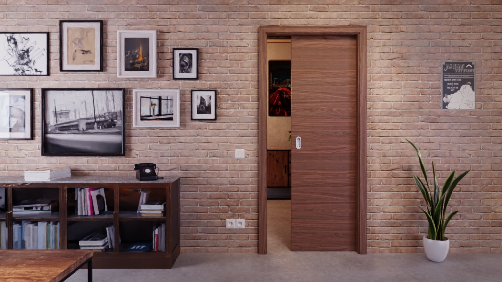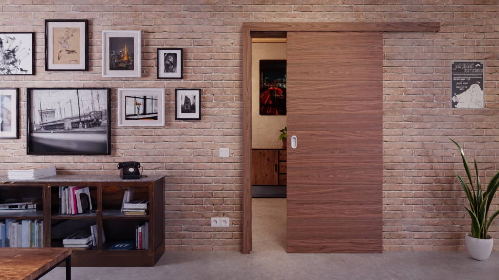 Ponadczasowo praktyczne: Drzwi przesuwne od producenta jakościowego Lebo w orzechu Cross łączą stylową elegancję z wysoką funkcjonalnością, oferując nowe możliwości aranżacji przestrzeni.
