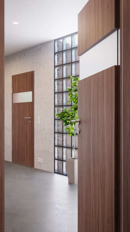 Wąski, poziomy pas świetlny w górnej części drzwi subtelnie podkreśla drzwi wewnętrzne i wzbogaca Twoje wnętrze o czarujące efekty świetlne.