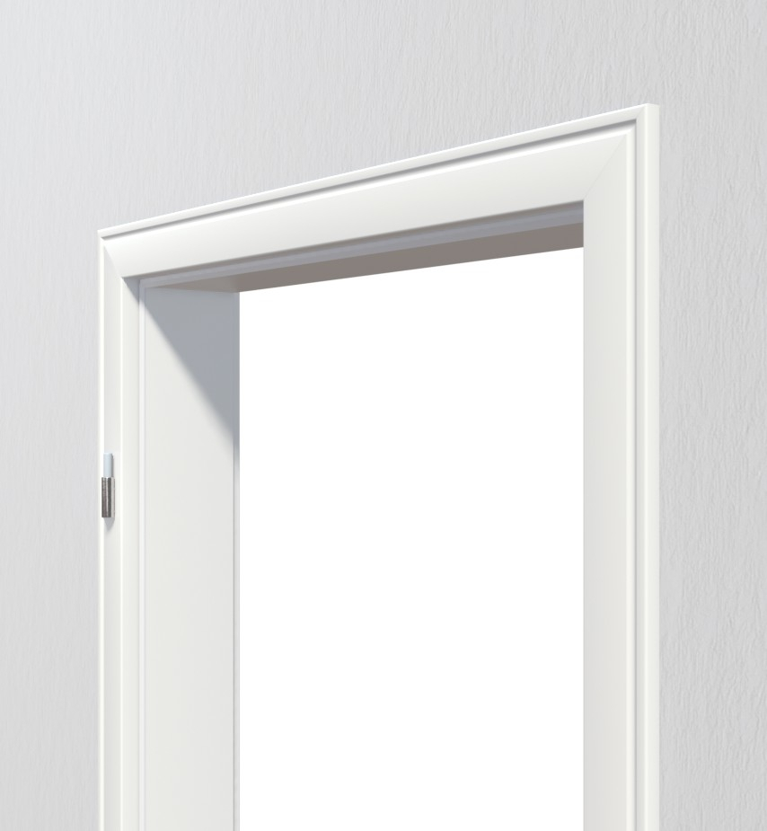 Ościeżnica w kolorze RAL 9016 zapewnia odpowiednie wsparcie dla drzwi. Profilowane wykończenie podkreśla klasyczny design ościeżnicy. Listwa wykończeniowa z zaokrąglonym brzegiem oferuje zakres regulacji do plus 15 mm. Wysoka jakość wykonania objawia się również w 75 mm szerokim wykończeniu z MDF.