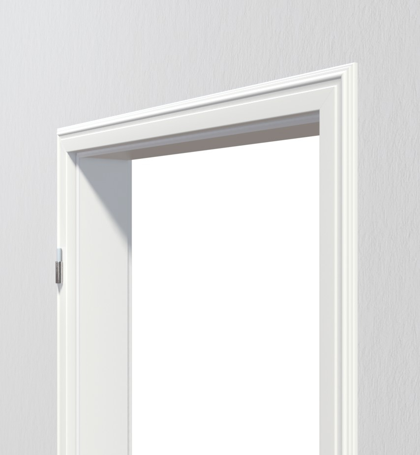 Ościeżnica standardowo wyposażona jest w zabezpieczającą wkładkę, wzmocnione uchwyty stalowe i białą taśmę uszczelniającą. Model można montować przy grubości ściany od 80 mm.