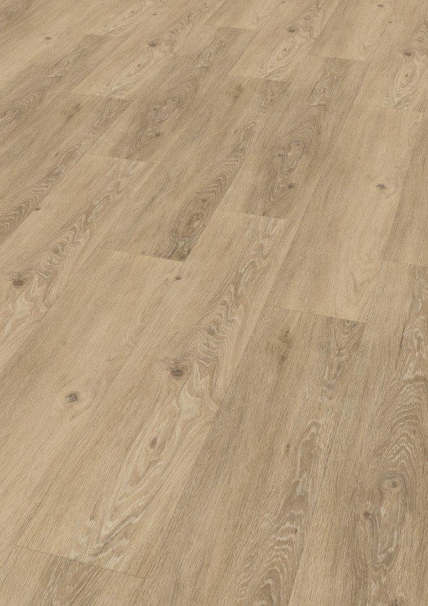 Ponadczasowe panele winylowe o wyglądzie drewna dębowego o niewielkiej wysokości montażowej.