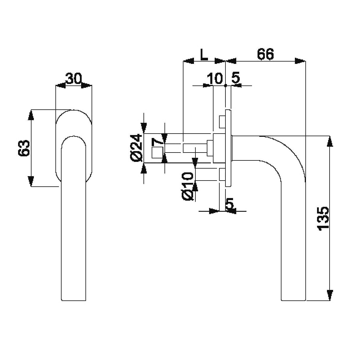 • Kształt klamki: w kształcie litery L
