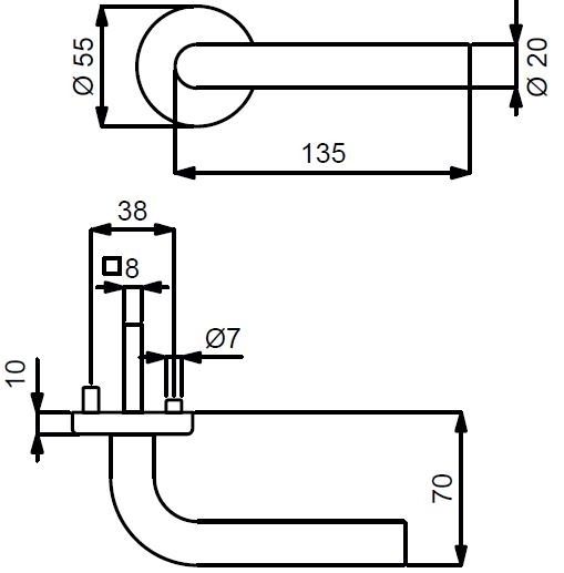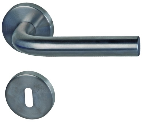 Matowy stal nierdzewna nadaje nowoczesny i klarowny wygląd. Okrągłe rozetki są połączone z cylindrycznym uchwytem i kulistym przyciskiem. Dzięki zintegrowanej sprężynie powracającej uchwyt zawsze wraca do pierwotnej pozycji.