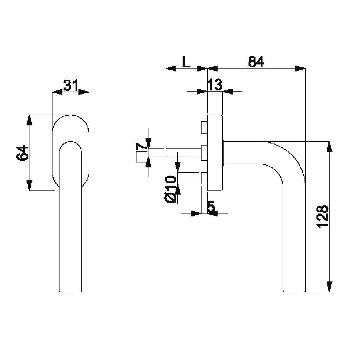 • Kształt klamki: w kształcie litery L