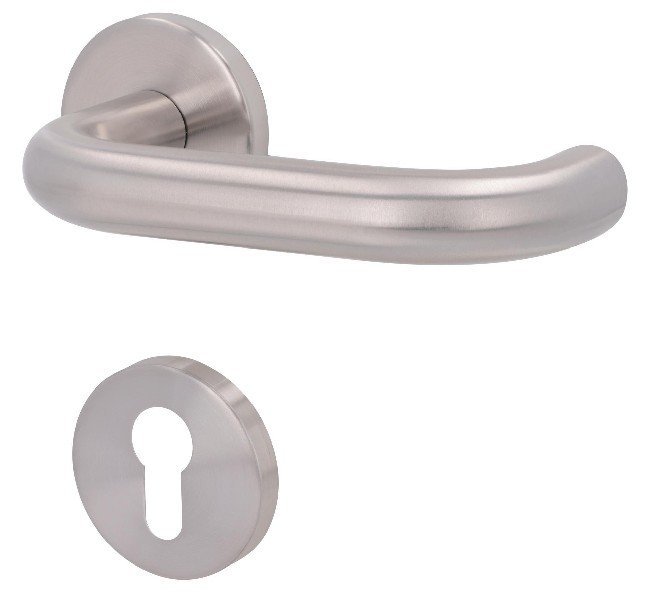 Wewnętrzny zamek ze szczotkowanej stali nierdzewnej prezentuje się dyskretnie z okrągłymi rozetami i klamką w kształcie litery U. Klamka wyposażona jest w zintegrowaną sprężynę podtrzymującą, która zapewnia jej poziome położenie.