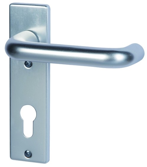 Perłowo-satynowe aluminium wygląda przyjaźnie i jasno. Krótka tabliczka półgarnitury ma kształt prostokątny i jest widocznie przykręcona. Dzięki u-kształtnej konstrukcji uchwyt pewnie leży w dłoni.
