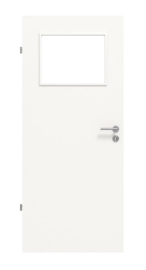 Prostokątny wycięcie szklane znajduje się w górnej części drzwi. Jego podwyższona lokalizacja zasłania widok na Twój pokój na pierwszy rzut oka i zapewnia światło z góry.