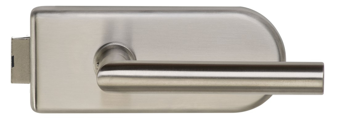 Elegancka klamka do drzwi szklanych z okrągłą, L-kształtną klamką: