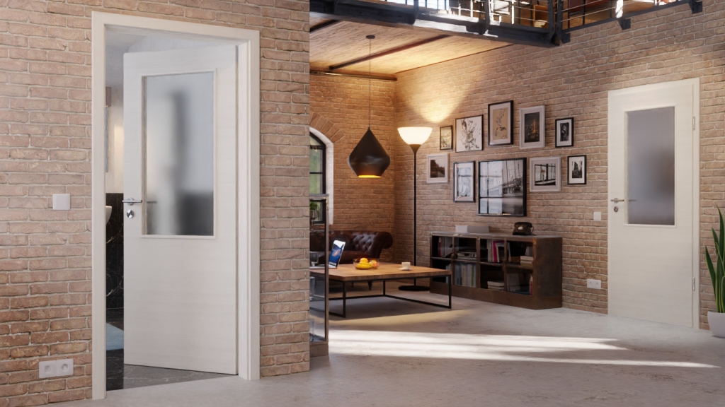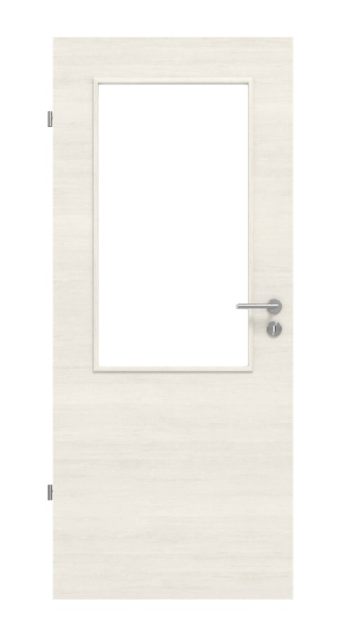 Kwadratowe przeszklenie z odpowiednimi listwami szklanymi tworzy nowoczesną atmosferę. Wizualnie oddziela drzwi. Dzięki widokowi na Twój pokój przez górną część powstaje świeży wygląd. Dolna część chroni drzwi przed uszkodzeniami szkła dzięki podwyższonej pozycji przeszklenia.