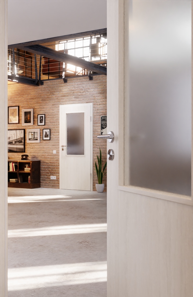 Powierzchnia jest odporna na zarysowania i ścieranie oraz wytrzymuje działanie wilgoci, uderzeń i ciepła. Te właściwości są możliwe dzięki sprasowaniu wielowarstwowych papierów kraftowych, papieru dekoracyjnego i ochrony overlay. Jest szczególnie odpowiednia dla wynajmowanych mieszkań i mieszkań własnościowych, a także dla nieruchomości komercyjnych. Możesz wybierać między płytą wiórową a pełną wiórową w przypadku wkładu drzwiowego.