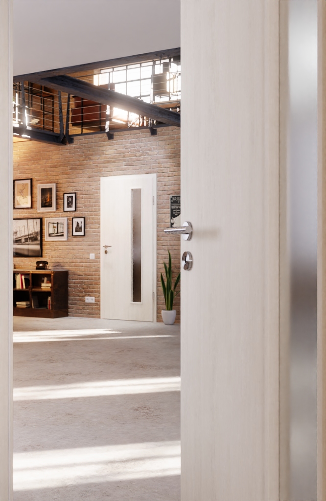 Drzwi wewnętrzne mają odporną powłokę z reprodukcją drewna, która jest wyposażona w subtelne, wierne odcienie kolorystyczne. Dzięki temu uzyskuje się naturalny wygląd z charakterem drewna.