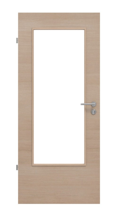 W standardowej konfiguracji skrzydło drzwiowe jest bez wkładu szklanego. Wypełnienie szklane jest dostępne za dodatkową opłatą.