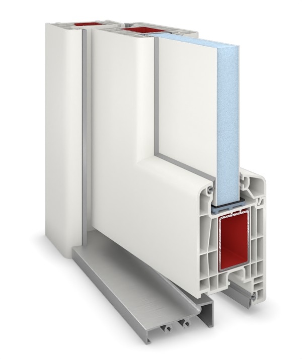 W tych drzwiach bocznych zarówno w ościeżnicy, jak i w ramie skrzydła zastosowano wytrzymały profil wielokomorowy z PVC z dodatkowym wzmocnieniem stalowym zapewniającym większą stabilność. Konstrukcję uzupełnia wypełnienie z tworzywa sztucznego o grubości 24 mm oraz aluminiowy próg podłogowy. Dzięki zawiasom regulowanym w trzech wymiarach i pięciokrotnemu zamkowi rolkowemu drzwi zapewniają dobrą podstawę pod względem bezpieczeństwa, którą na życzenie można jeszcze zwiększyć poprzez zamek grzybkowy lub zamek z hakiem obrotowym oraz elektrozaczep.