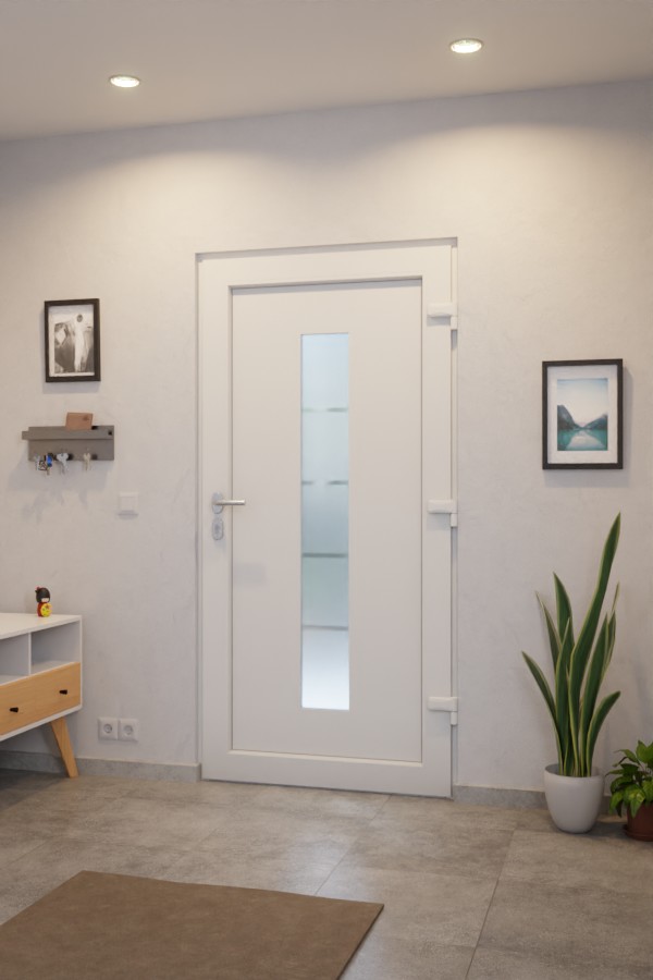 - Drzwi wejściowe z wytrzymałego i trwałego tworzywa sztucznego